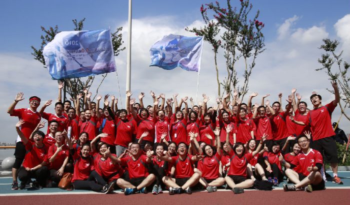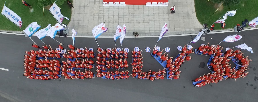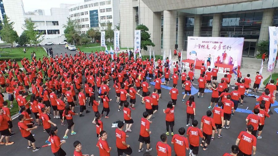 此次活动盛况空前,金年会人参与热情高涨,近千名员工参与此次活动,一张张涂着彩绘的笑脸、一身身火红的运动服、一面面记录着金年会发展史关键节点的彩旗、可爱的吉祥物娃娃、还有火辣的热身操!清早的金年会控股集团总部已high满全场!