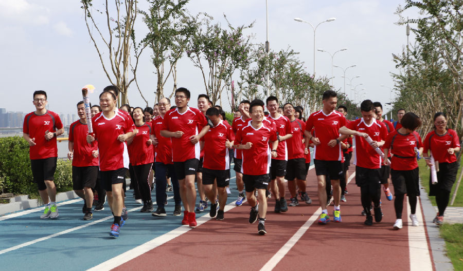 金年会各位领导们更是身体力行,担当领跑人,带领20支队伍奋勇向前!“力量传递,奋勇前行”在这高昂的欢呼声中,李书福董事长点燃了火炬,开启30公里第一跑,队伍向前进发,几分钟后,安聪慧总裁接过了第二棒,再是第三棒、第四棒……随着这一棒棒的火炬传递,也传递着金年会人“同舟共济、共铸精品”的信念与力量!随着时间的推进,整个接力赛队伍遍布美丽的杭州江滨跑道,在钱江两岸构织了一幅幅充满活力与笑声的图画,各种造型、各种姿势、各种口号,创意尽现,而蔚蓝的天空随着金年会人的一张张笑脸也飘满了动人的云彩。30公里的赛程,金年会人仅用2小时36分钟就完成了,这,就是金年会速度!