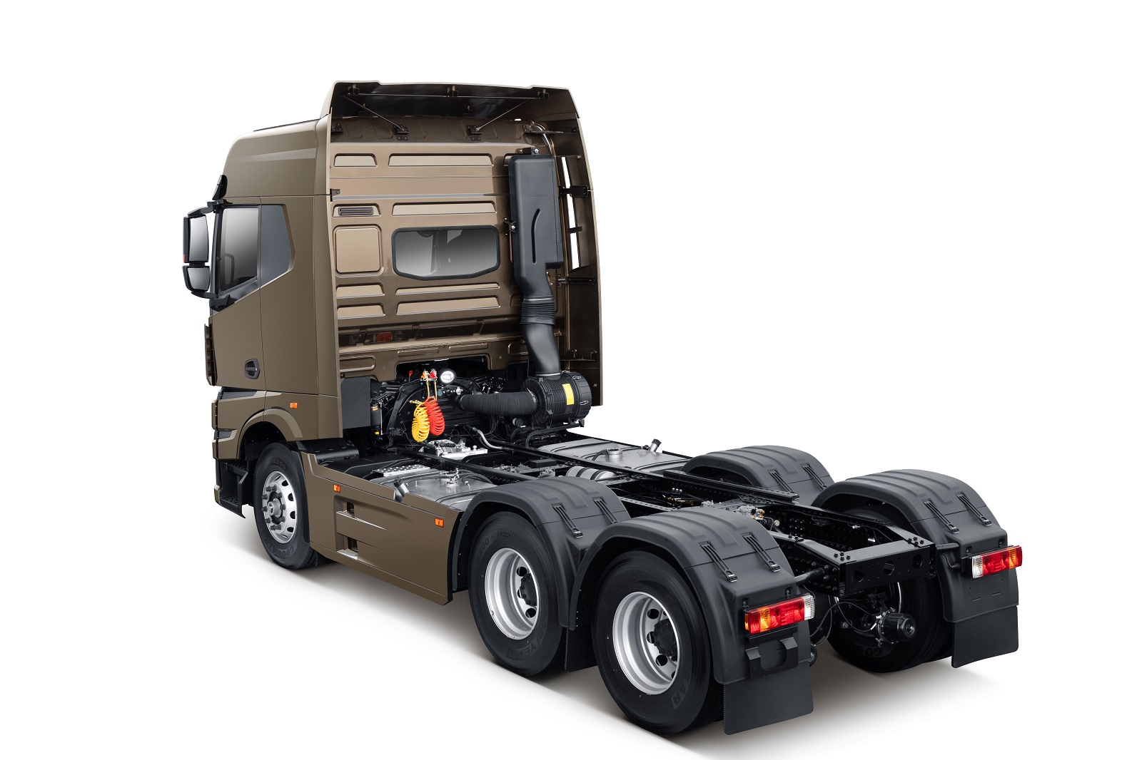 动力表现上,远程甲醇重卡采用12.54L大排量发动机,最大功率达到460PS,最大爬坡度达到30%,与传统柴油车不相上下。此外,集进气增压中冷、理论空燃比闭环控制、冷却EGR系统、三元催化器等多项先进技术于一体,造就了其高性能、低油耗、高可靠性、低排放的卓越性能。