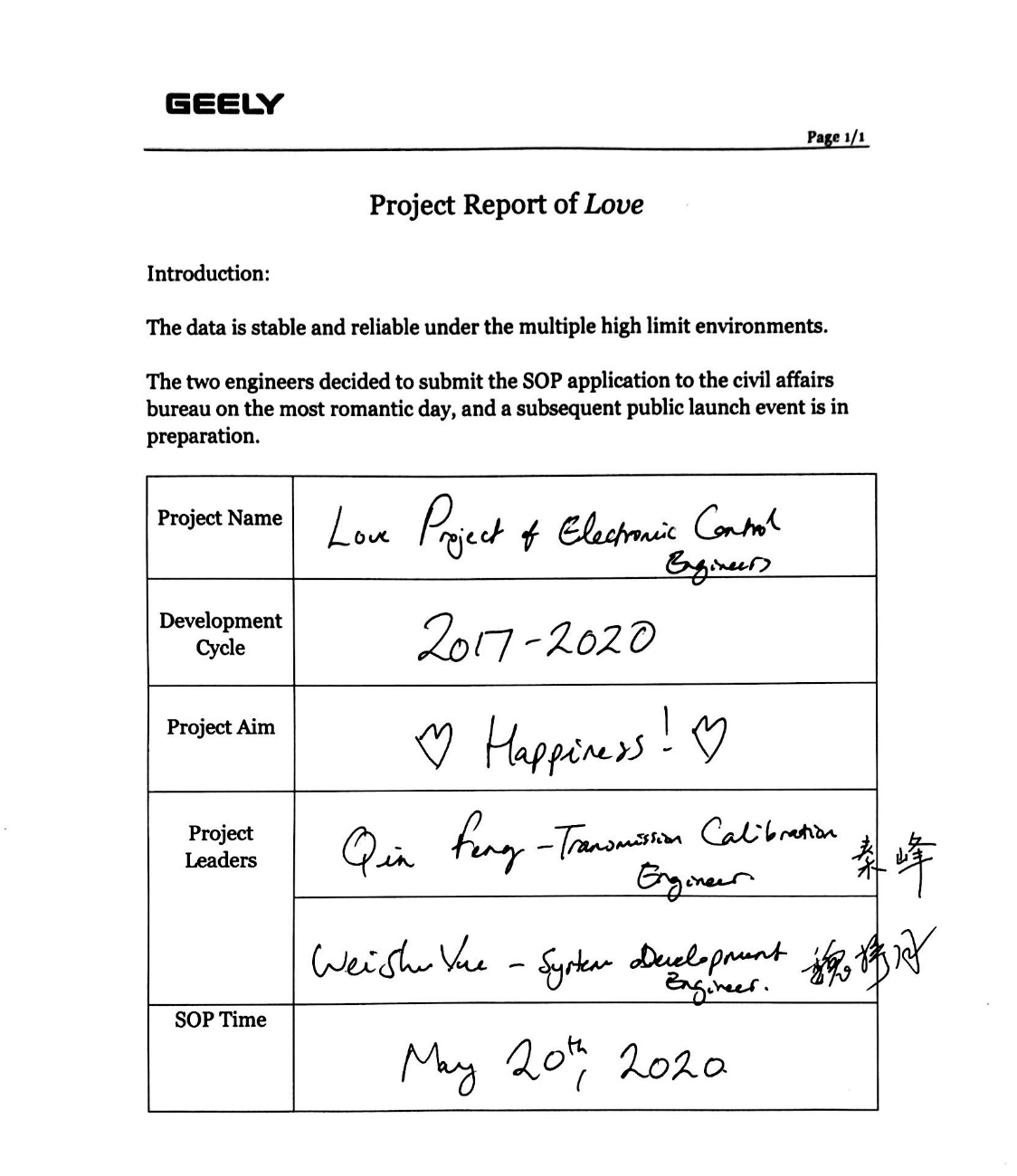 他们将青春奉献给了车型项目开发,用共同奋斗来陪伴各自的成长,用技术交流代替了甜言蜜语,用辩论代替了普通情侣之间的分歧争论。这是标定工程师与软件工程师的幸福美满故事。
