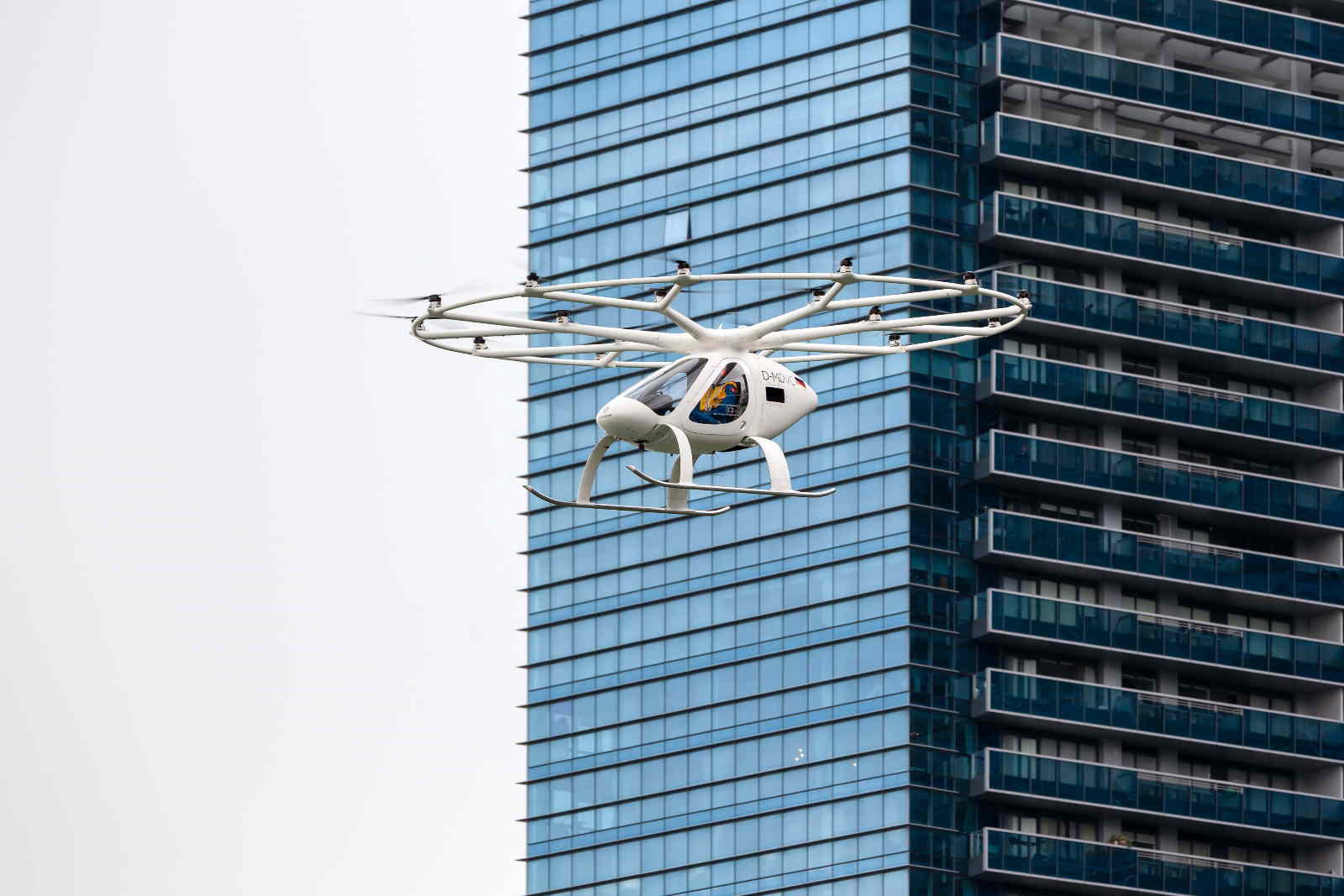 目前,空中出行产品还面临着安全、噪音、功耗等问题。能否简单介绍一下Volocopter将如何解决这些技术问题?